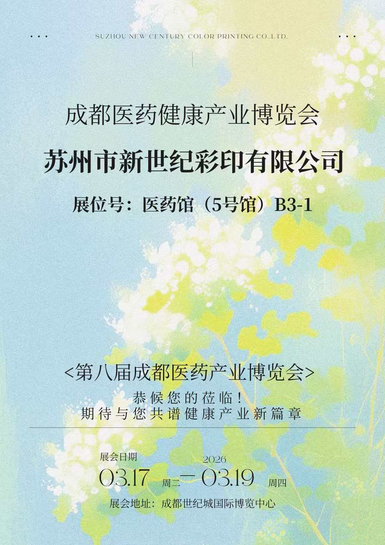 از 17 تا 19 مارس 2026، هشتمین نمایشگاه صنعت پزشکی و بهداشتی چنگدو با شکوه در مرکز همایش ها و نمایشگاه های بین المللی Chengdu Century City برگزار شد. Suzhou New Century Color Printing Co., Ltd. (که از این پس "چاپ قرن جدید" نامیده می شود) آخرین دستاوردهای خود را در زمینه بسته بندی دارویی در غرفه B3-1 در سالن داروسازی (سالن 5)، به طور جامع قدرت جامع خود را در چاپ بسته بندی دارویی، طراحی ساختاری و خدمات انطباق به نمایش می گذارد. شرکت های داروسازی و کارشناسان صنعت زیادی را برای توقف و تبادل نظر جذب کرد.